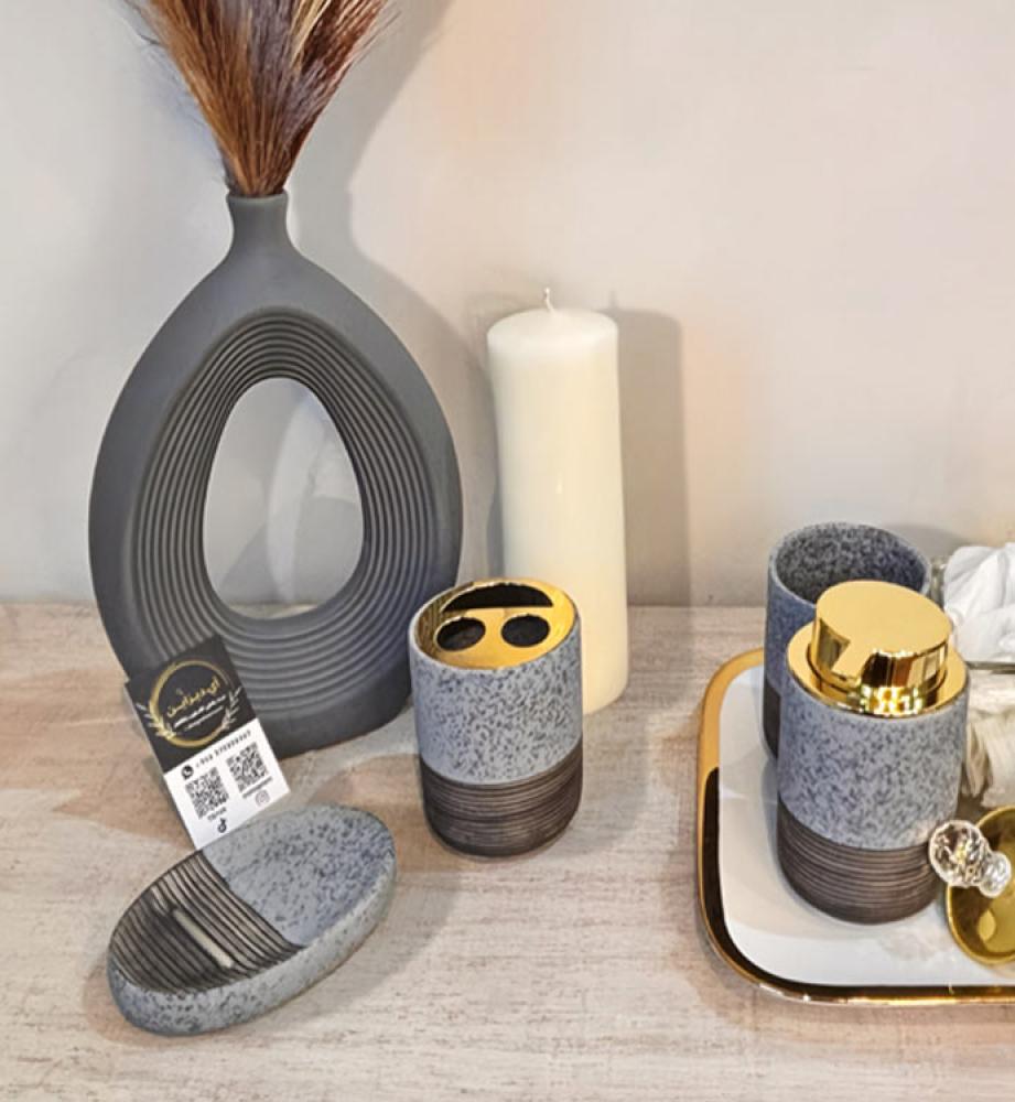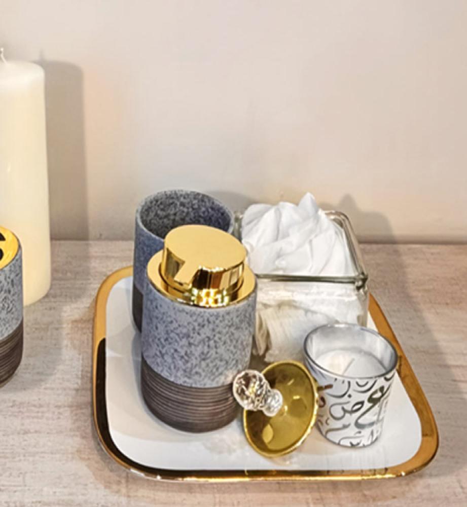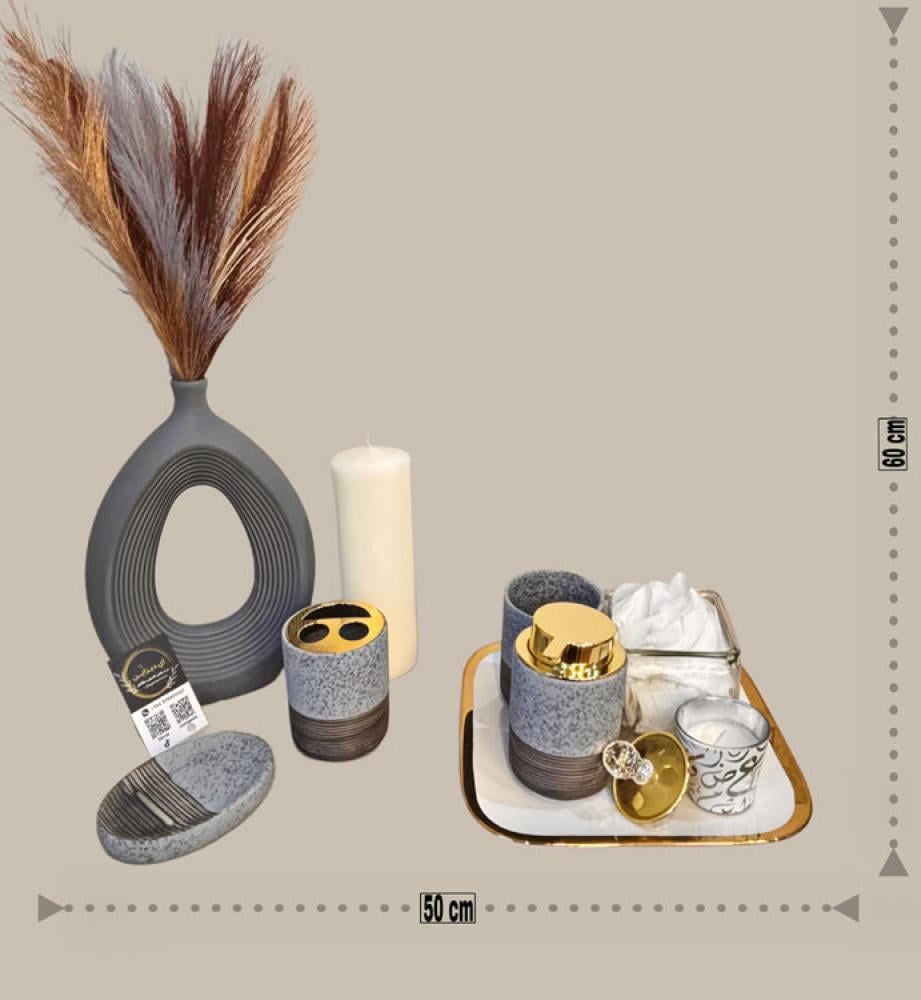ديكور مغسلة ضيوف رمادي ذهبي من 10 قطع
