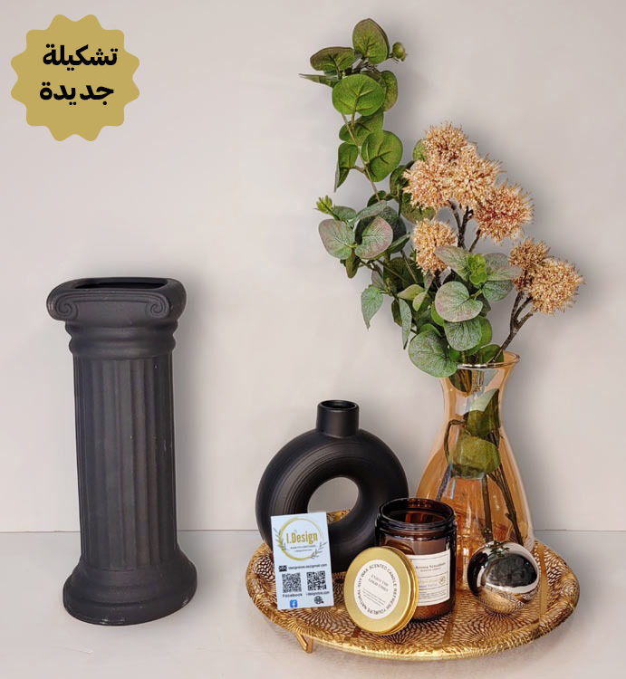يمكن أن يكون الفاز الأسود ذو التصميم الروماني مصنوعًا من مادة مثل السيراميك الكلاسيكية التي تُذكِّر بالفن الروماني التقليدي.