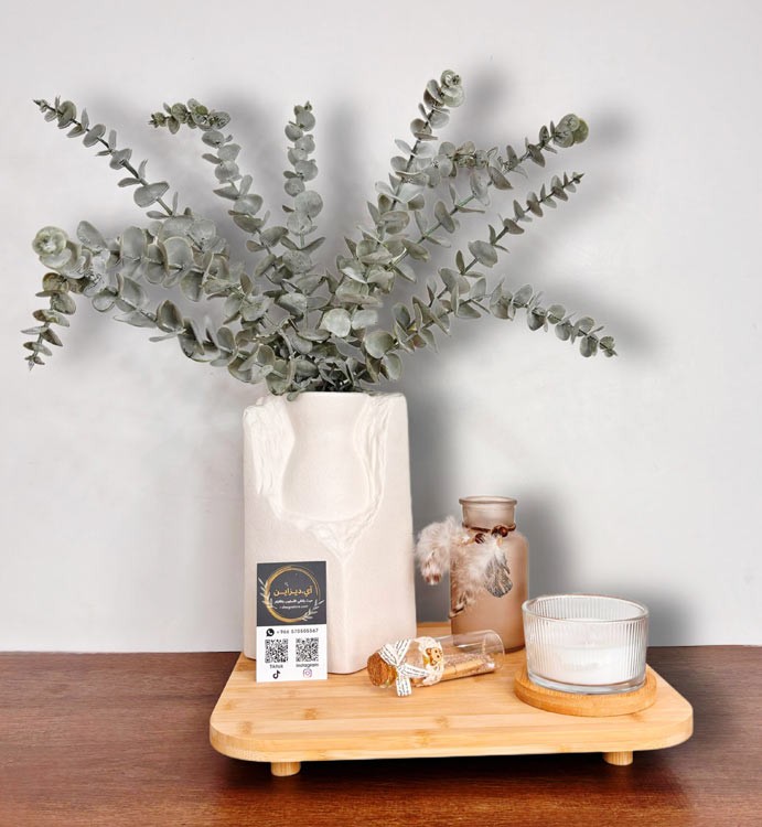 يضفي الفاز الزجاجي بتصميمه البسيط ولمسات الريش البيج تباينًا أنيقًا على الطاولة، ليكمل ديكور طاولة سفرة بشكل مثالي.