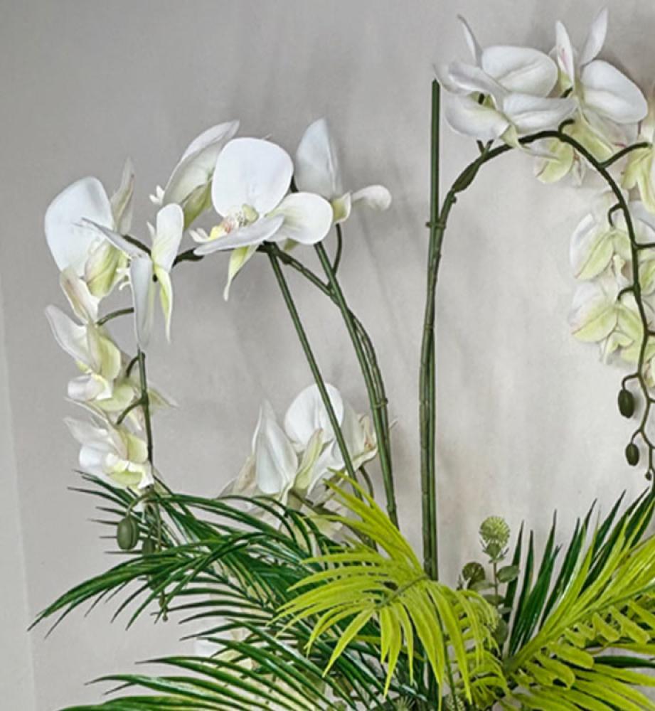 - باقة الأوركيد الأبيض مع النباتات الخضراء: