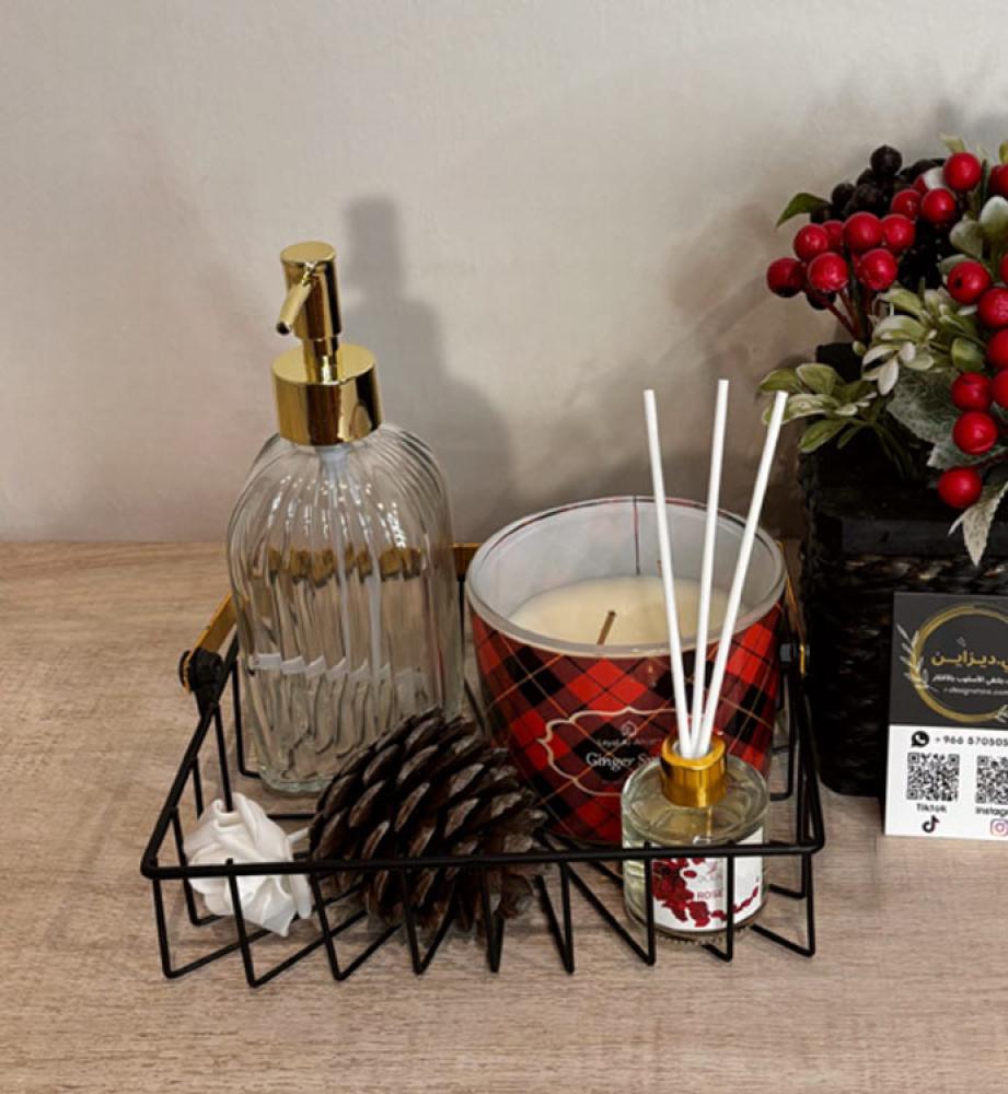 هذا الحامل شفاف بغطاء ذهبي. يُستخدم لوضع الصابون السائل.