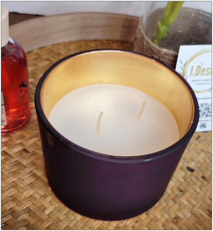 - يوجد أيضًا كوب كبير أسود به شمع معطر لبعث المزيد من الروائح الجميلة في المكان، أو لاستخدامه كعنصر ديكور فخم.