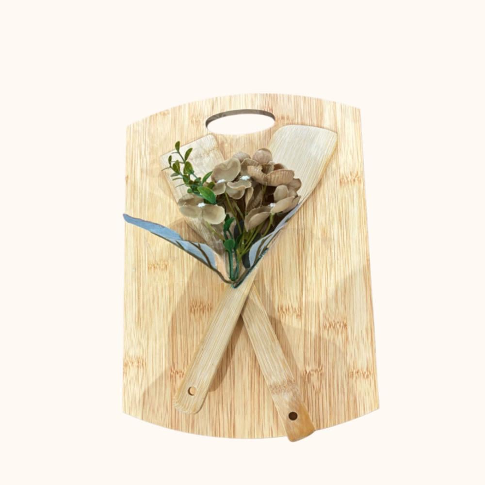 إذا كنت تبحث عن لوح تقطيع خشبي مع ملعقتين خشب، فهو خيار ممتاز يجمع بين الوظائف والجمالية في المطبخ