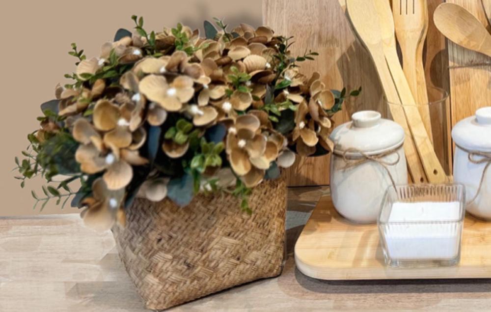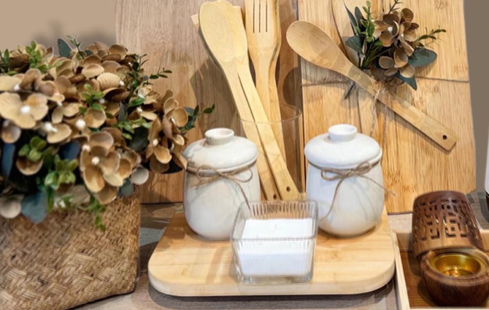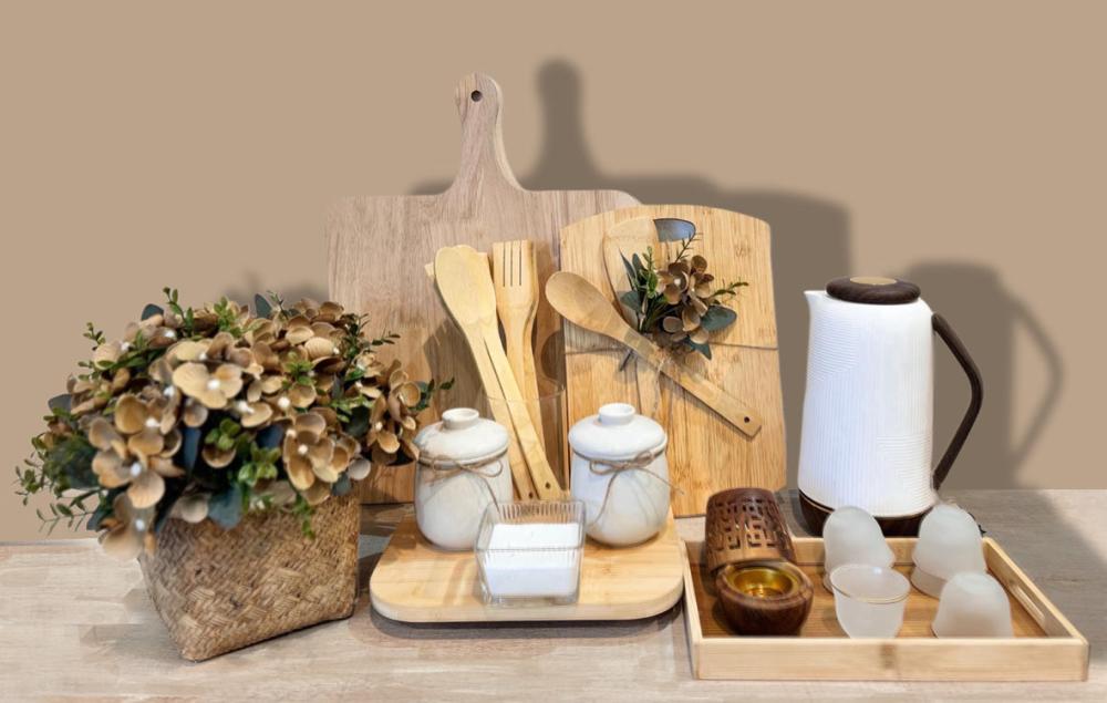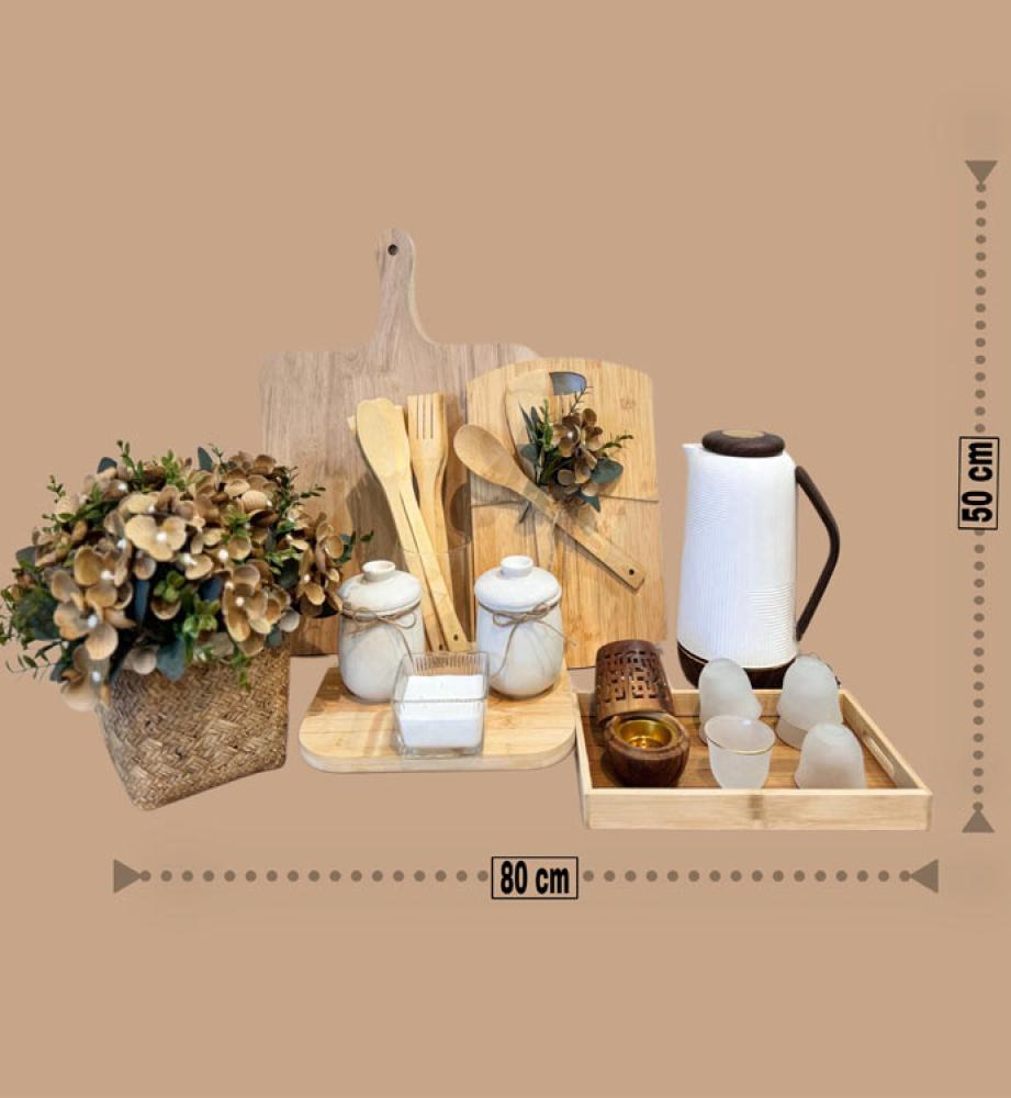بمجموع 21 قطعة ديكورية متناسقة، تم إنشاء زاوية مطبخ دافئة وأنيقة تجمع بين العناصر الطبيعية والحديثة بشكل جمالي ووظيفي